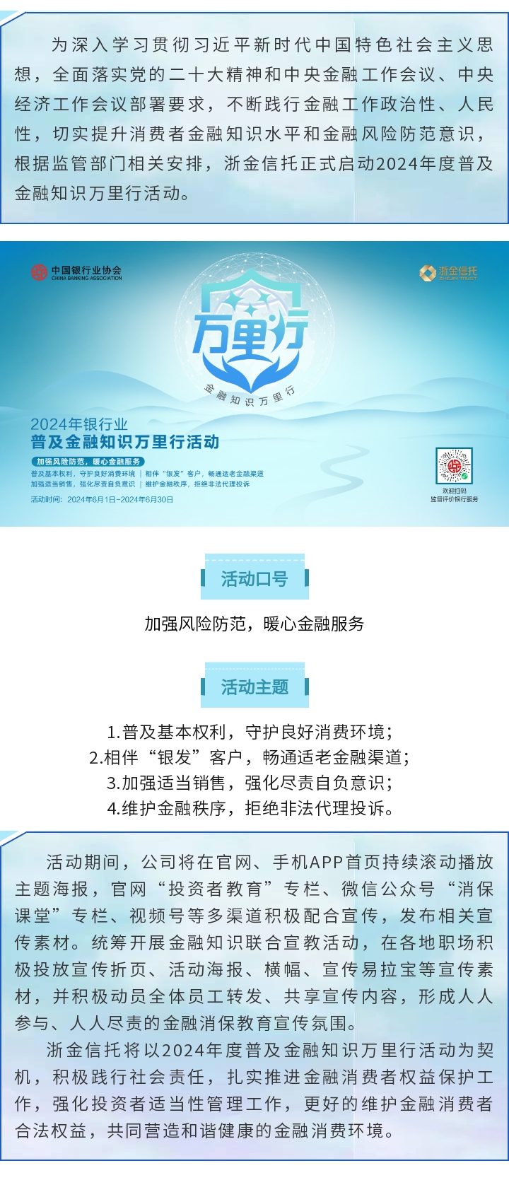 浙金信托正式啟動2024年度普及金融知識萬里行活動